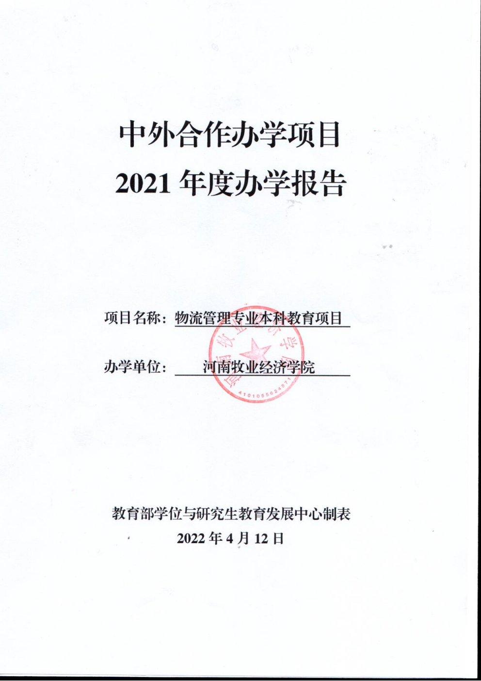 有效日期:2019年10月21日至2028年12月31日开设专业:物流管理(专业代码:120601H)