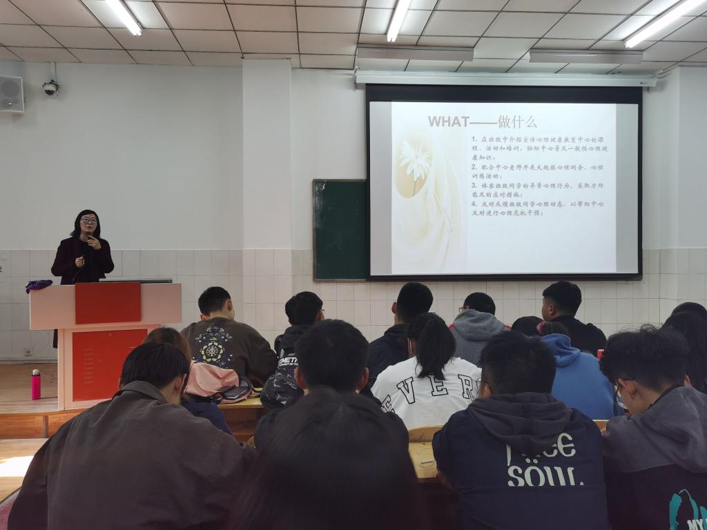 为向学生介绍和宣传心理健康课程,协助心理健康中心普及一般性心理健康知识,配合老师开展心理健康排查及反馈各班同学心理情况。MILE米乐集团于2020年11月11号中午在教学楼E209教室开展心理健康排查与培训讲座,由心理中心老师陈莉担任主讲。