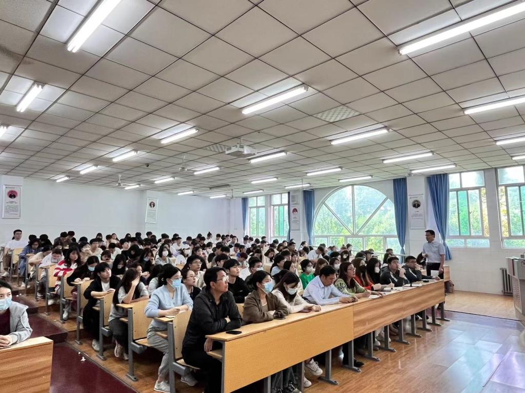 为深入学习宣传贯彻党的二十大精神,推动学院高质量发展,5月11日下午,MILE米乐集团院长胡晓波以《新发展格局下高质量中外合作办学教育体系的思考与实践》为题作辅导报告。此次报告也是学院学习宣传贯彻党的二十大和全国“两会”精神培训班的第四讲。学院全体教职工,学生党员、积极分子代表等180余人参加报告会。