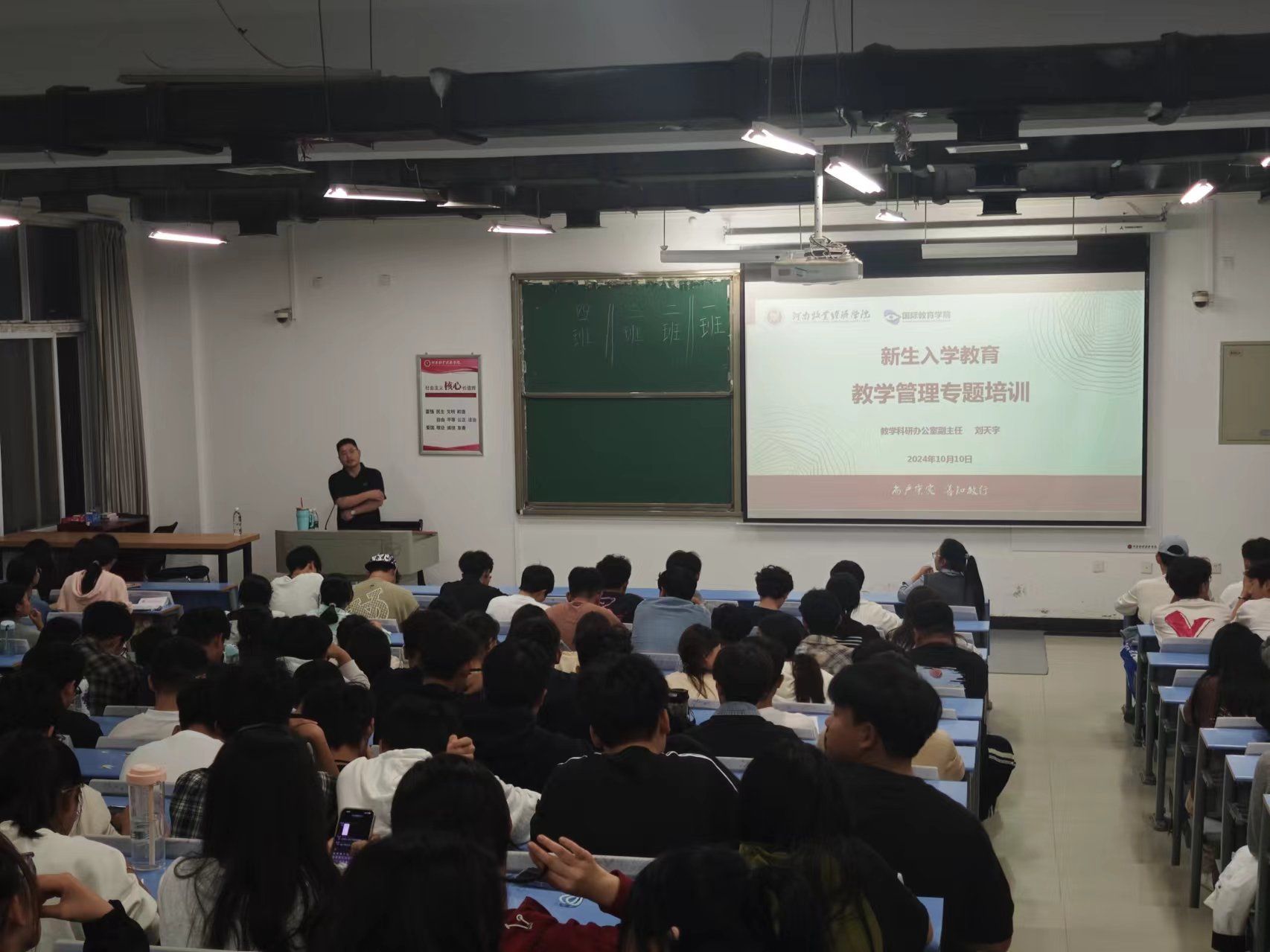 为引导学生熟悉学校教学运行规律,科学制定学业生涯规划,10月10日下午和11日晚上,MILE米乐集团在英才校区学术报告厅和龙子湖校区1号教学楼301举行了2024级新生入学教育之教学管理专题培训。本次培训由学院教学科研办公室副主任刘天宇主讲,2024级全体学生参加学习。
