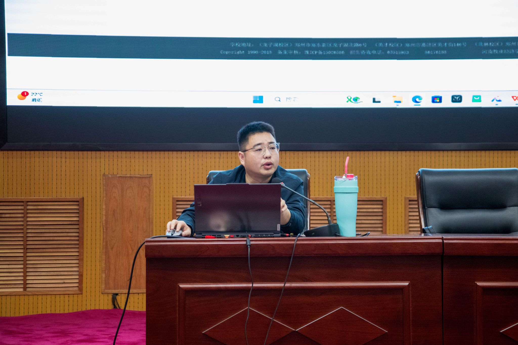 刘天宇以学生教学管理为主题,从“你眼中的大学是什么”这一问题引入,从人才培养方案解读、课程选修安排、重修补修流程、资格审查、奖学金获取、学籍管理及学科竞赛体系七个方面,引导学生树立良好的学业观,做好学业规划。结合学生的学分获取,课程选修、免修、重修、补修等教学环节,他强调新生应尽快以大学生视角带入到学业规划,转变学习态度,在规划生涯发展的过程中做好学业规划,以坚定的信念和信心系好大学的第一粒扣子。在谈到资格审查和学籍管理工作时,他结合往年学生案例,提醒和警示学生们要正确对待学业成绩在学生生涯中的作用。最后,他从专业认知角度结合学科竞赛体系内容,指出学生在专业理论学习之外,要重视实践能力的提升。