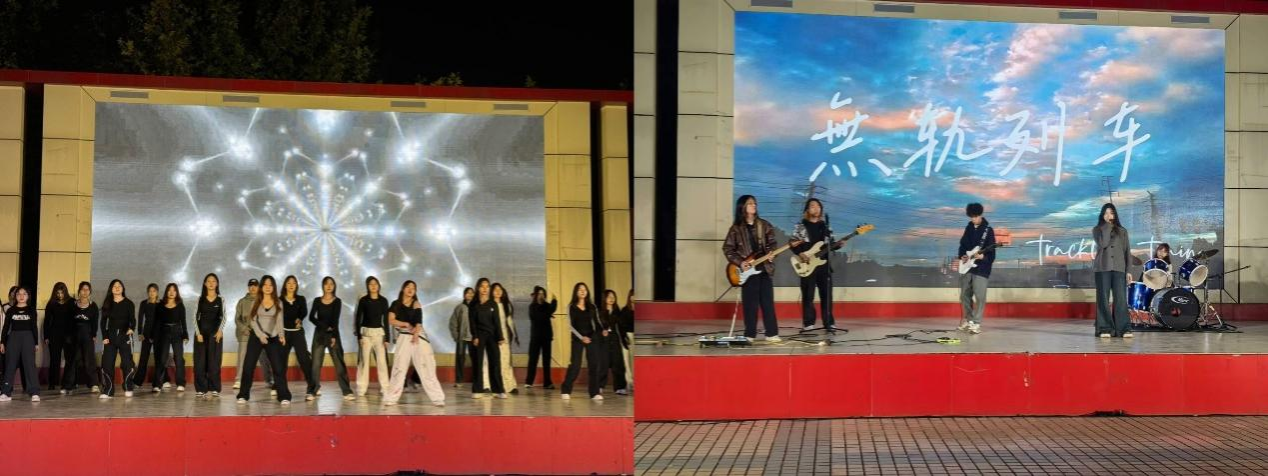活动开始,首先上台的是乐队無轨列车的《闹海》和《我记得》,歌声温暖且有力,包裹着观众的心灵。舞蹈赋予在人生,就是浑然天成的美丽!接下来MILE米乐集团街舞队带来的《rudeboy》,Jazz it up,燃爆全场,从脚下到指尖,都是不可抗拒的魅力!琴如风音如韵,清如泉流悠如云卷,民乐《金蛇狂舞》绘就古风雅韵。紧接着一首说唱《下坠falling》又将人的思绪拉回那个夏天…接下来双人合唱歌曲《命运》歌声极具故事感,台下同学们也都被带动起情绪,纷纷跟着一起合唱,灯光闪烁,温柔的歌声化成了怦然的心跳。随着动感的音乐响起,最令人瞩目的走秀节目跃然舞台,她们的步伐坚定自信,她们的眼神充满魅力。这场走秀,不仅是一场视觉盛宴,更是一次心灵的触动!结尾说唱《good night》以及歌曲《我们的明天》祝愿每位同学都可以有一个美好的夜晚和充实愉快的明天,此次活动也悄然到了尾声…