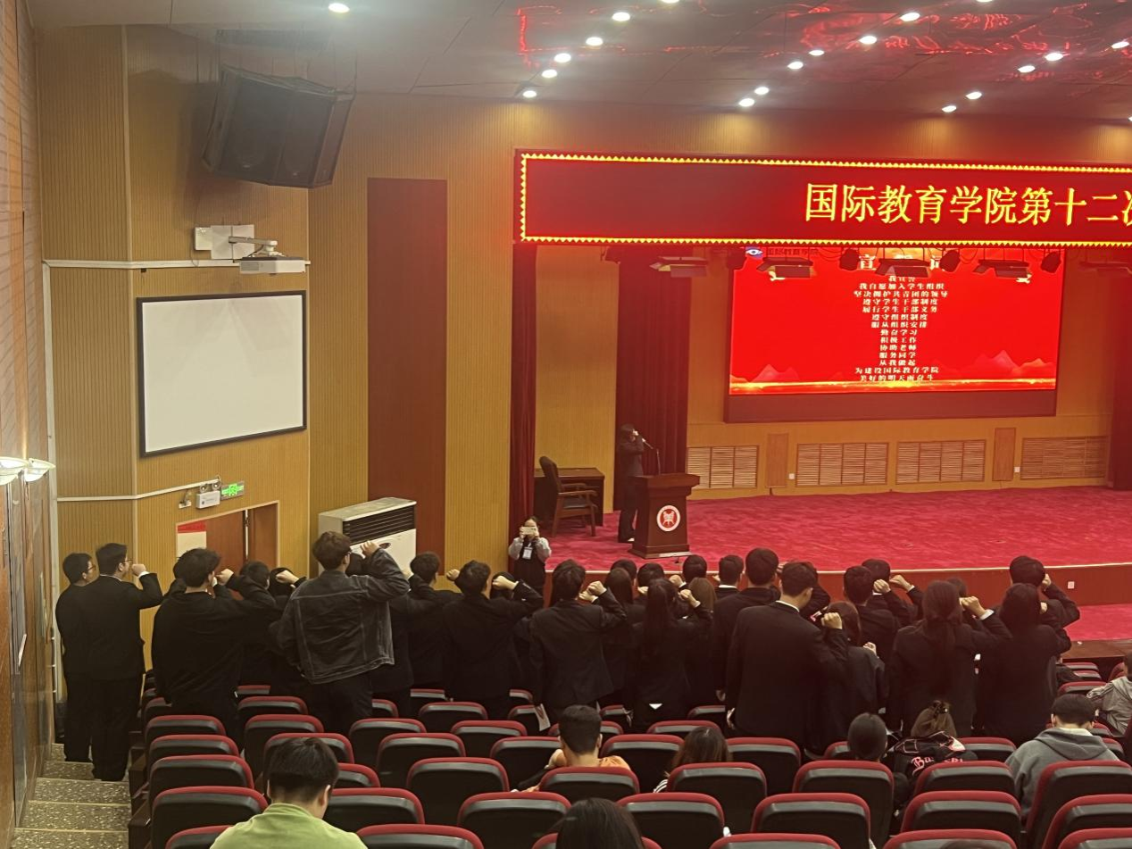 大会在庄严的国歌声中拉开序幕。首先第十二届团学会主席孙佳彤致开幕词,她从自身经验从发为新一届团学会提出建议,希望团学会能够得到长久发展并不断完善提高。紧接着,李江红书记代表院党委进行了发言,她回顾了过去一年学院在团学工作方面取得的显著成绩,对广大团学干部的辛勤付出表示衷心感谢,并希望新一届团学组织能够继续发扬优良传统,不断创新工作思路,为学院的发展贡献青春力量。于此同时,李书记强调,团学组织是学院联系广大学生的桥梁和纽带,要始终坚持以学生为中心的工作导向,不断创新工作方法和手段,为广大学生提供更加优质、高效的服务。随后,院团学组织负责人侯丁琳老师作了工作报告。报告全面总结了过去一年院团学会在思想引领、校园文化、社会实践、志愿服务等方面的工作成果,同时指出了存在的问题和不足,为新一年的工作提供了宝贵的经验和启示。她提出:“团学会成员在为广大同学提供更优质服务、开展更丰富课外活动的同时,也要专注于提升自身素质,做到多方面发展,提高自身硬实力,致力于成长为复合型人才,持续提高团学干部的整体素质标准。”