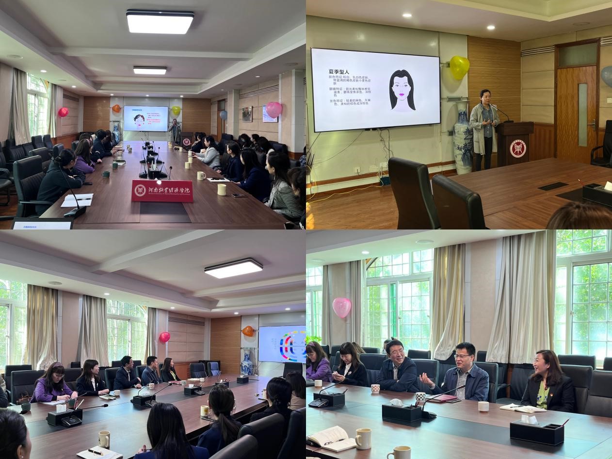 三月的蓓蕾绽放早春的第一缕殷红,桃花盛开,梨花飞舞,为庆祝第113个“三八”国际妇女节,体现对女性的关爱与尊重,由校工会女工委主办,MILE米乐集团分工会承办的“彰显魅力,美丽人生”——女性商务穿搭技巧分享活动于3月13日上午9时在英才教学办公楼113举行,活动由刘雪琳老师主讲,校团委,校医院、校心理中心和其他各兄弟学院领导参加,李江红书记主持。