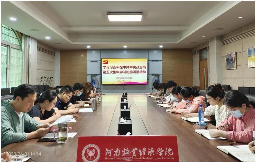 学院党政办主任刘超领学了习近平总书记在中共中央政治局第五次集体学习时的重要讲话精神。与会人员围绕学习内容分享心得体会,大家一致表示将认真学习习近平总书记重要讲话精神,把教育强国建设融入到日常的学习工作实践中去,不断强化学习贯彻习近平新时代中国特色社会主义思想的思想自觉、政治自觉、行动自觉。