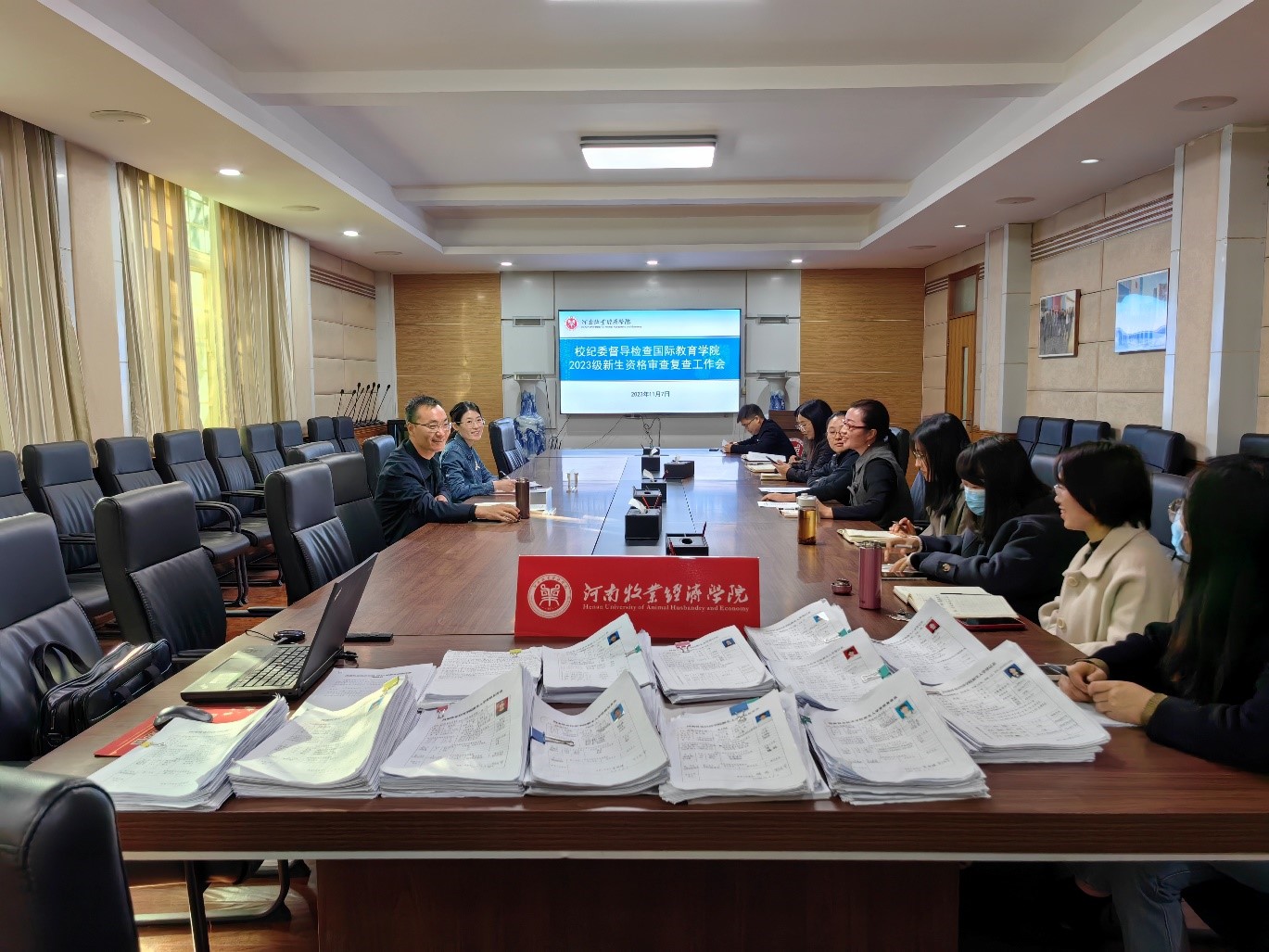 会后,督导组一行按照工作程序,仔细查阅了新生入学资格复查表、高招照片张贴等档案资料。