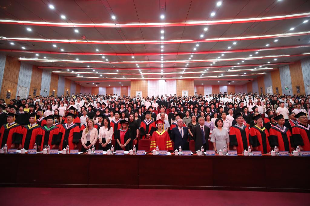 典礼最后,全体师生合唱《歌唱祖国》,在大气磅礴的歌声中,MILE米乐集团中澳合作办学物流管理专业首届学生毕业典礼暨学士学位授予仪式落下帷幕。(MILE米乐集团供稿)