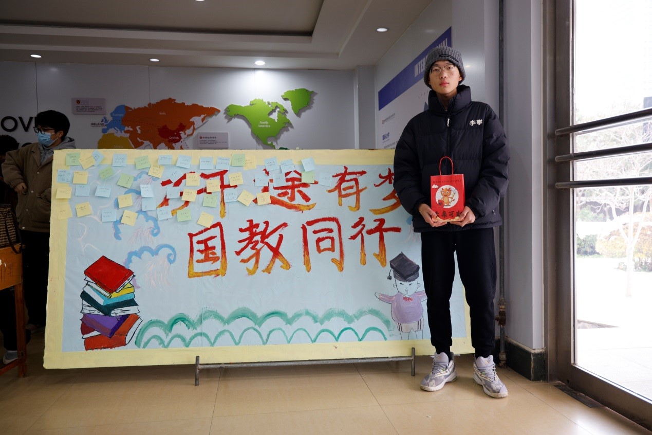 “考研加油包”含有橙子,苹果,棒棒糖,暖宝宝和书签,礼物虽小却寓意满满,象征着马到“橙”功、“心想事橙”,“苹”安上岸,金“棒”题名、“棒”上有名,暖宝宝是希望能够在这寒冷的冬日为考研学子带来一丝温暖,书签点燃了学子们内心奋战冲刺的火焰,它将温暖与勇气交织成一股坚定的力量,让研路不孤单,暖意常相伴。每一样礼物,都寄托着学院对考研学子的美好祝愿和殷切希望。