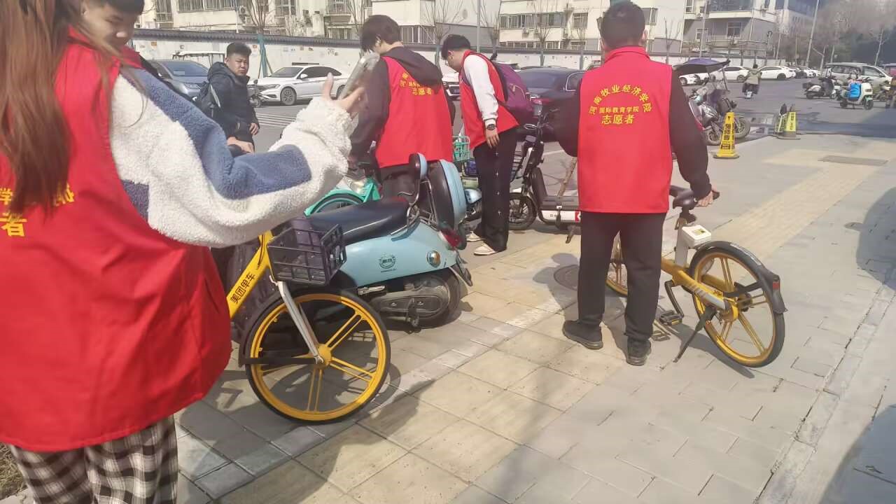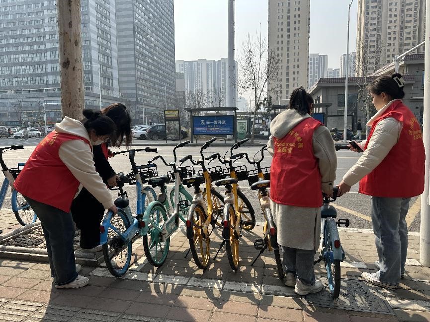 当天上午,两个班的的成员们齐聚学校附近的自行车停放点,开始了他们的志愿服务之旅。他们细心地扶起每一辆倒地的共享单车,将停放不规范的车辆一一规整,确保每辆单车都停放在规定的区域内。共享单车的初衷是为了方便人们的出行,然而,无序的摆放却给人们的出行带来了困扰。经过他们的努力,原本杂乱无序的停车位变得整齐有序,为市民出行提供了便利。