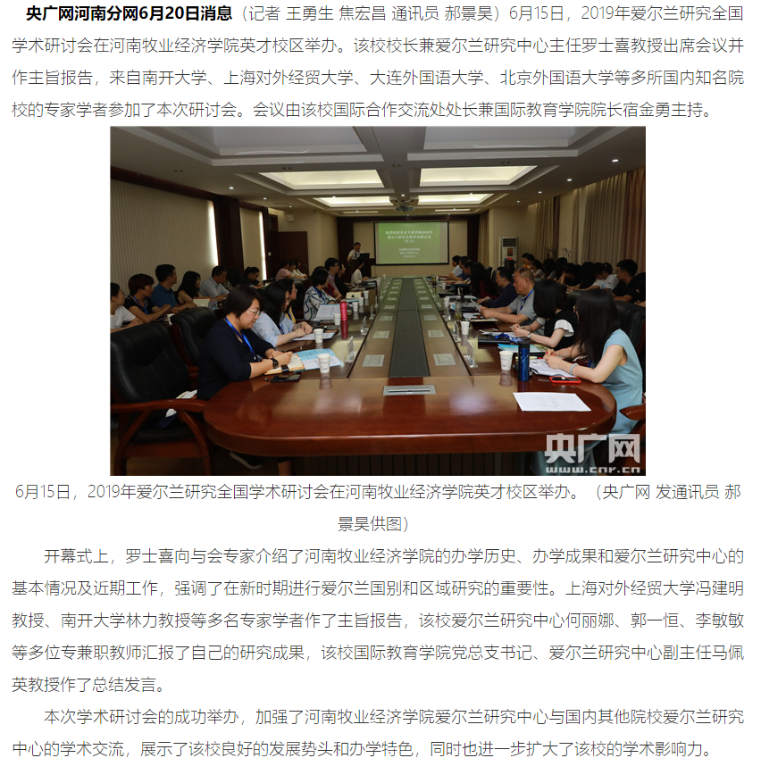 年爱尔兰研究全国学术研讨会,以下是央广网对会议的具体报道。
