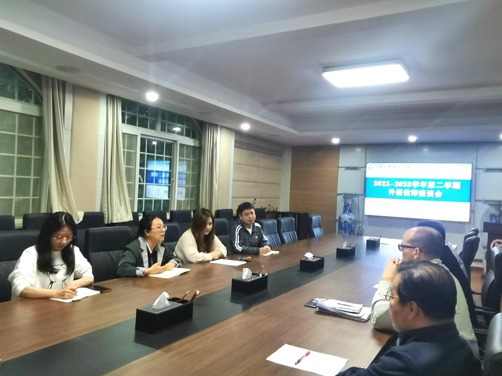 为切实加强教育教学管理,落实教学管理内容,规范外籍教师日常行为,4月27日晚,MILE米乐集团组织召开了2022-2023学年第二学期外籍教师座谈会。参加会议的人员有副院长邓瑜、副院长王胜男,教学科研办公室主任苏晓辉、副主任刘天宇及外籍教师Thomas、Adam、Jafy、Dan四位外籍教师。会议由刘天宇主持。