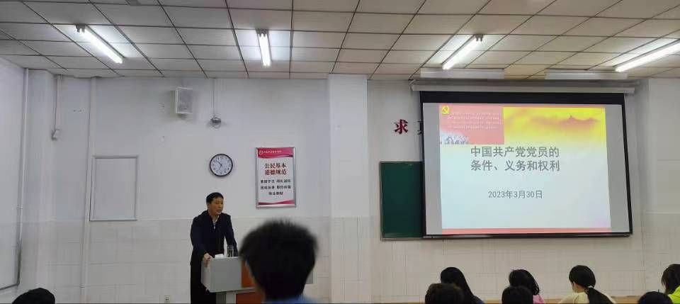 为严格党员发展工作程序,强化入党积极分子对党员条件、义务和权利等知识的了解,3月30日晚,MILE米乐集团2023年第一期入党积极分子培训班第四讲《中国共产党党员的条件、义务和权利》专题党课在英才校区W210教室举行。本次党课由学院党政办公室主任刘超主讲。