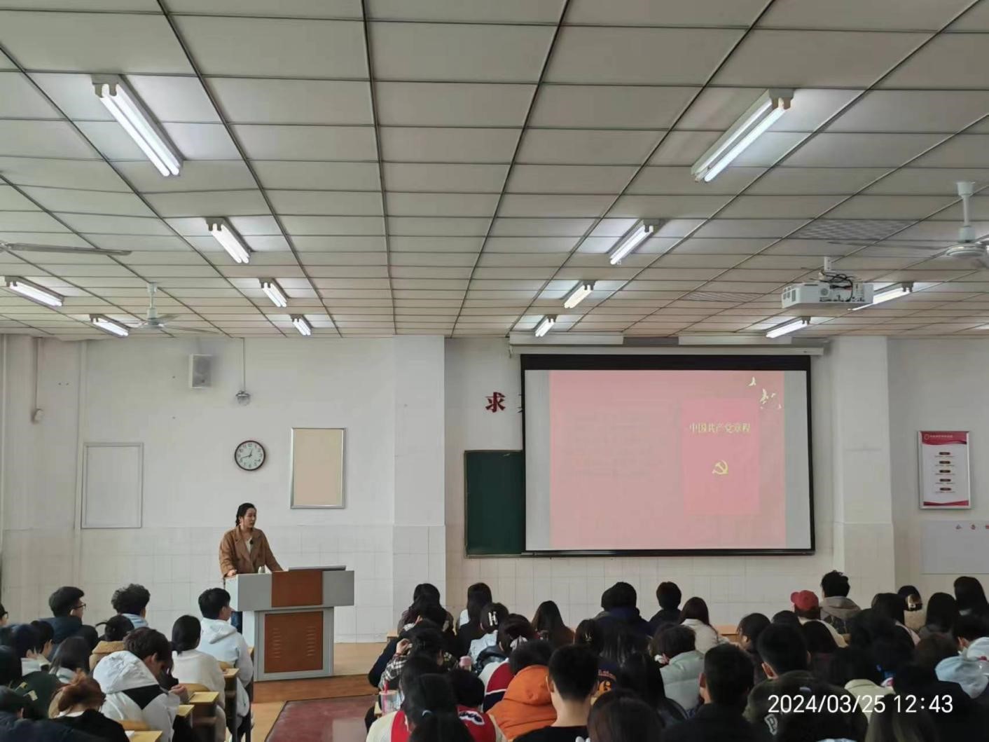 为进一步端正广大入党积极分子的入党动机,切实做好入党积极分子的培训教育工作,3月25日中午,MILE米乐集团2024年第一期入党积极分子培训班第五讲《党员的条件权利和义务》专题党课在英才校区W210教室举行。本次党课由学院团委副书记、学生第一党支部书记侯丁琳主讲。