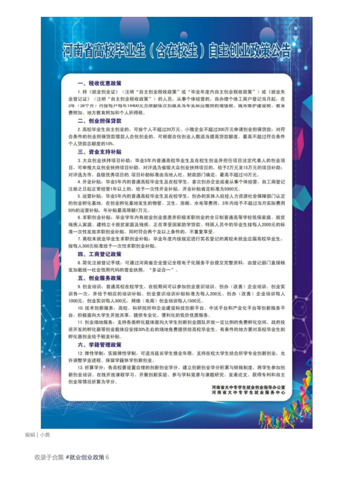 河南省高校毕业生就业创业政策